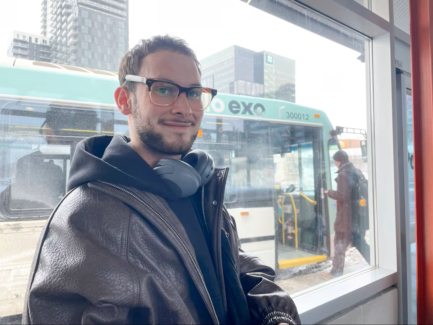 Gaël Yvars au terminus d’autobus de Longueuil. Il fait les frais des autobus qui ne passent pas d’exo, bonne dernière des 10 sociétés de transport du Québec, selon une étude de l’IRIS. Photo Anouk Lebel